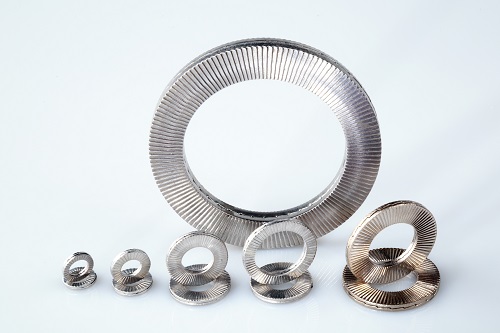雙疊自鎖(鎖緊)墊圈DIN25201是由兩片內(nèi)齒面咬合組成,外側(cè)帶有放射狀的斜細面齒紋,內(nèi)側(cè)為大角度斜齒面。斜齒面的角度大于螺紋角度,當(dāng)連接件受到振動,螺栓連接會隨著持續(xù)振動發(fā)生松動趨勢,僅允許墊圈內(nèi)側(cè)的斜齒面會產(chǎn)生相對錯動,產(chǎn)生抬升張力,從而達到完全的防松效果。雙疊自鎖(鎖緊)墊圈利用幾何原理,安全鎖緊處于強烈振動的螺栓連接。